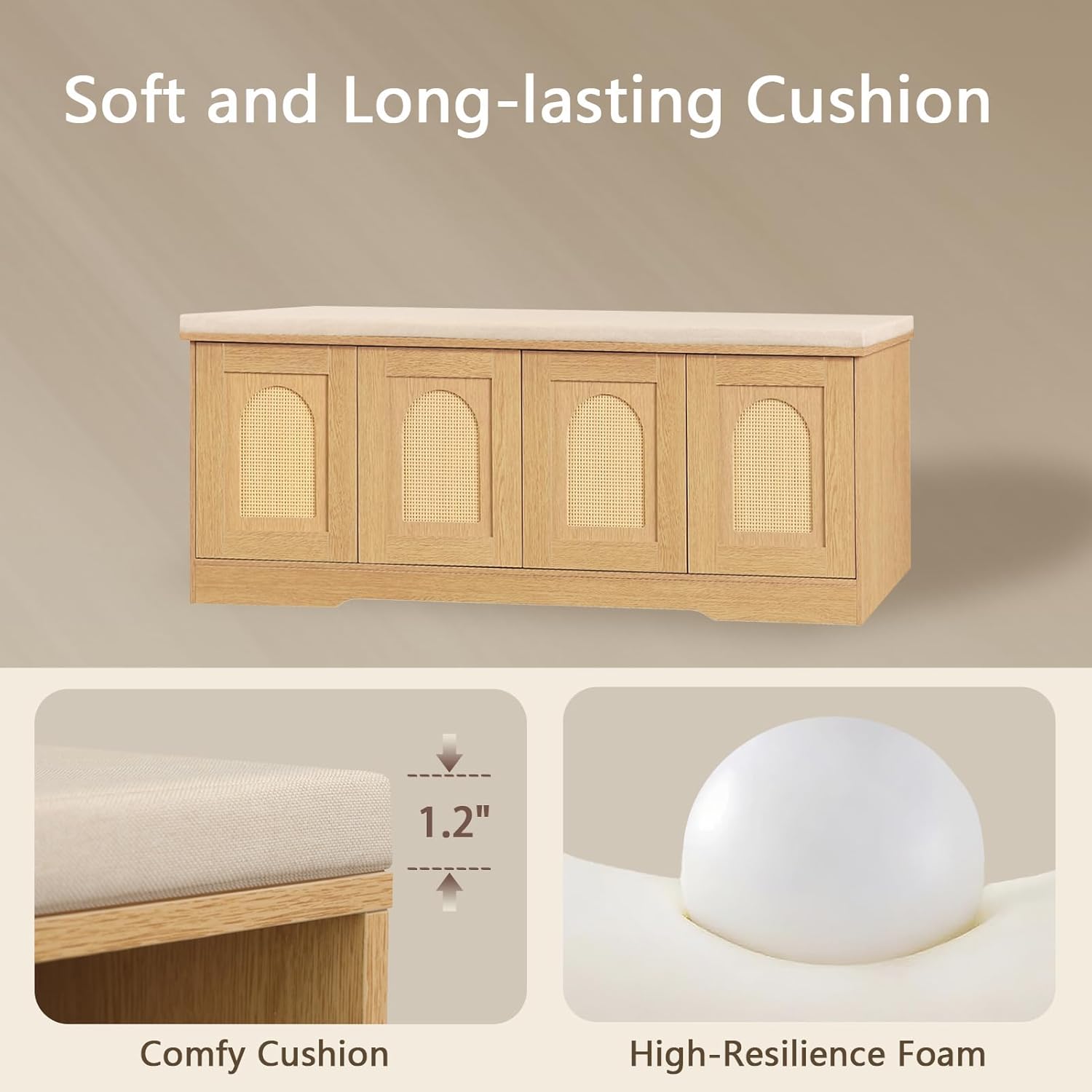 - 【Effortless Push-to-open Door】Feature a fully enclosed design with a press-to-open mechanism, keeping shoes clean and tidy while avoiding accidental bumps against door handles during use. Reasonable height and soft cushion let you change shoes by sitting on the bench more comfortable without bending down or squatting