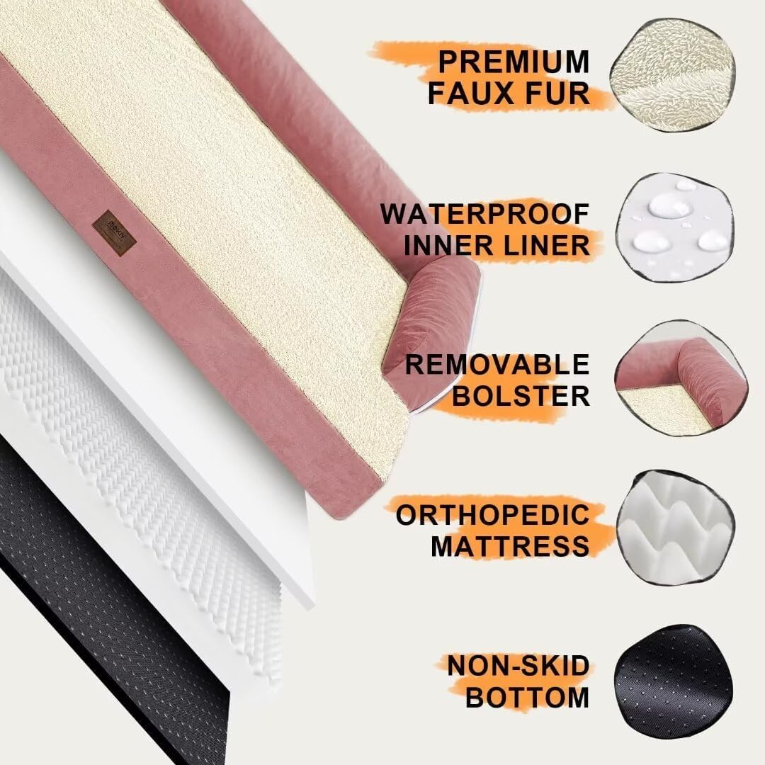 Extra Large Dog Bed-Orthopedic Waterproof XL Dog Bed for XLarge Extra Big Dogs - Foam Couch Sofa Washable with Removable Cover-Pink