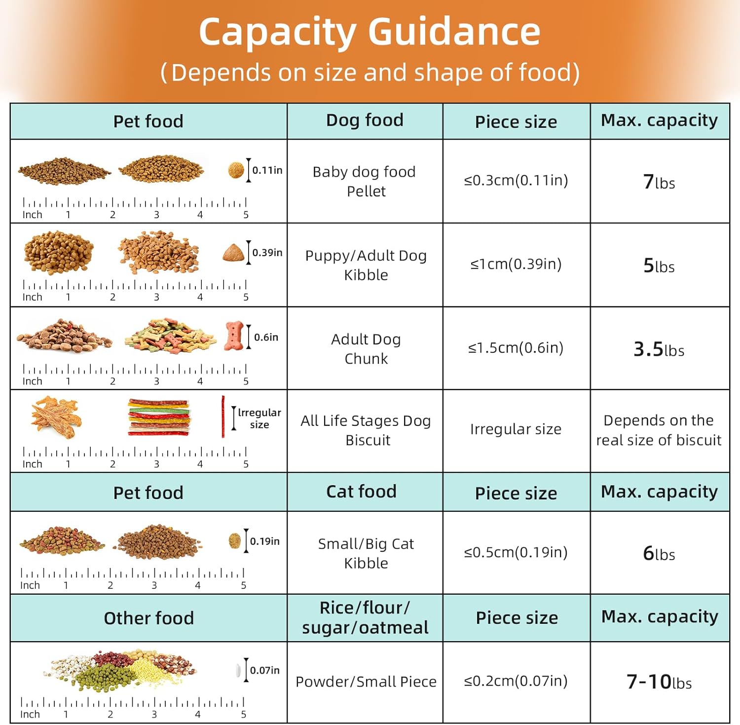 - MULTI-PUrRPOSE STORAGE:Our pet food container is suitable for storing dog food、cat food、bird seed、fish food、rice、 dry food、cereals、oats、cat litter 、flour and other large and small grains, as well as washing powder used at home. It is also a good choice.