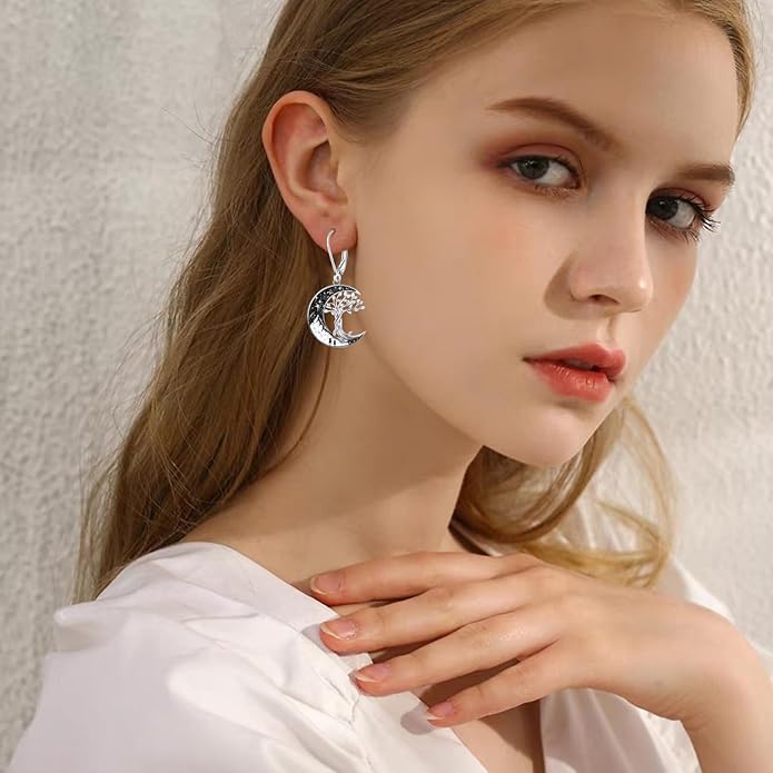 - ♥ Moon Tree of Life Dangle Earrings Size: 0.82*0.74 inches, this size to fit for most women, suitable for daily.