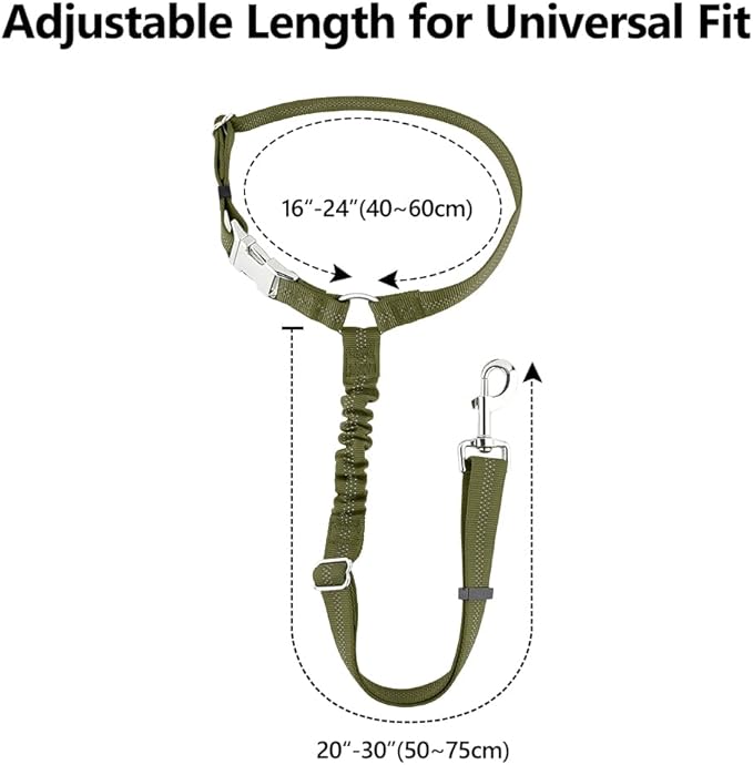 Plutus Pet Dog Seat Belt for Car Headrest, Reflective and Adjustable Restraint with Elastic Bungee for Safety, Vehicle Seatbelt Harness for Small Medium Large Dogs and Cats, Ranger Green
