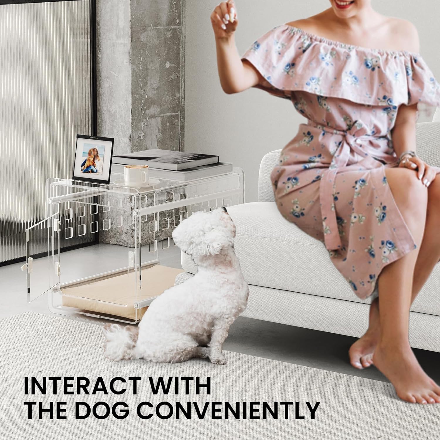 - 【MULTI-FUNCTIONAL】Not only a dog kennel, but also can be a chic coffee or side table, featuring heat bent acrylic with smooth rounded edges ensuring safety for both dogs and people during use.