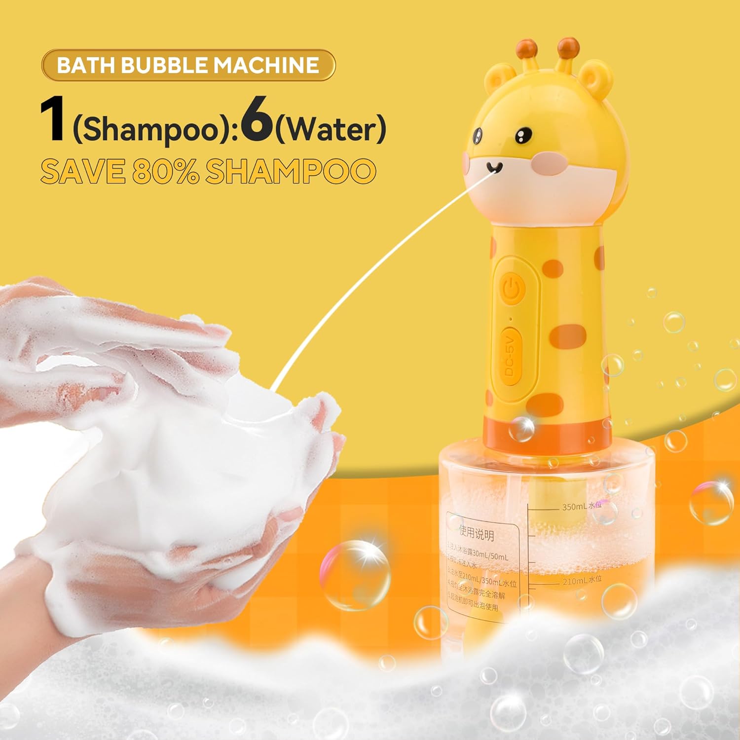 - 3.Saves 50% Shampoo + 2.5H Continuous Use Patented mixing technology creates 3x more foam using less product. The 2000mAh rechargeable battery outlasts bath time (2.5hrs/single charge) - no more mid-wash power failures!
