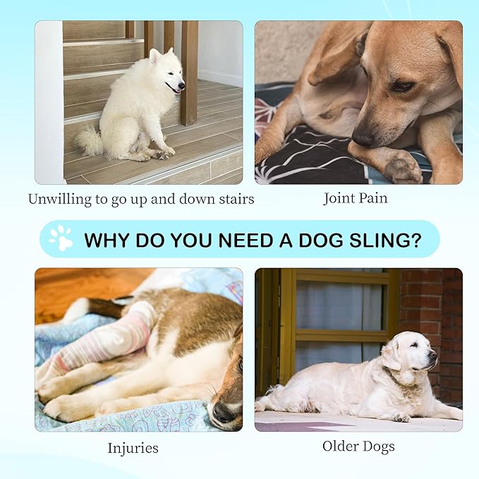 - Comfortable and durable material: The outer layer is made of flexible, durable neoprene and the inner lining is made of soft 400G mesh for breathable comfort. This sling helps prevent friction or pressure during use. Padded handles provide a secure, comfortable grip and reduce hand fatigue. Adjustable straps ensure a snug fit and make it easier to support your dog during daily walks, outdoor activities or rehabilitation exercises.