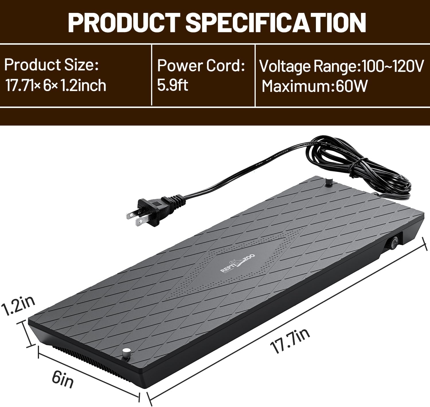 - 【Expanded Coverage for Large Habitats】: Specifically engineered for larger enclosures (recommended max size: 48"L x 24"W x 24"H / 120cm x 60cm x 60cm). Provides consistent, wide-area warmth essential for bigger reptiles or spacious terrarium setups.