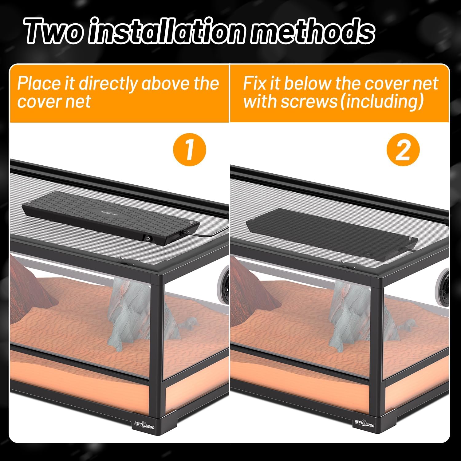 - 【Versatile & Secure Solution with Mounting Kit】: An essential heating upgrade for diverse reptiles (snake, crested gecko, leopard gecko,leopard tortoise). Includes all necessary screws for safe and stable under-lid installation, maximizing space and safety.