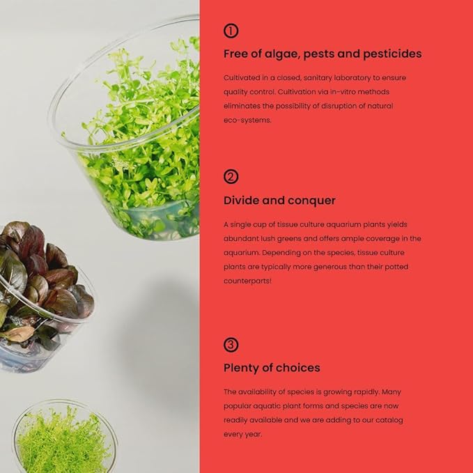 - Delivered as lab-grown tissue culture—100% pest-free and cultivated in sterile conditions to support clean, controlled aquascaping environments.