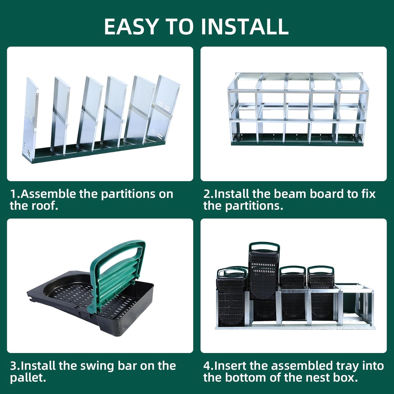 - CONVENIENT EGG COLLECTION MECHANISM: The unique tilting design of this nesting box allows the eggs to roll automatically into the collection tray for quick and easy egg collection. Say goodbye to tedious manual egg picking, you can easily access fresh eggs while ensuring they are intact.