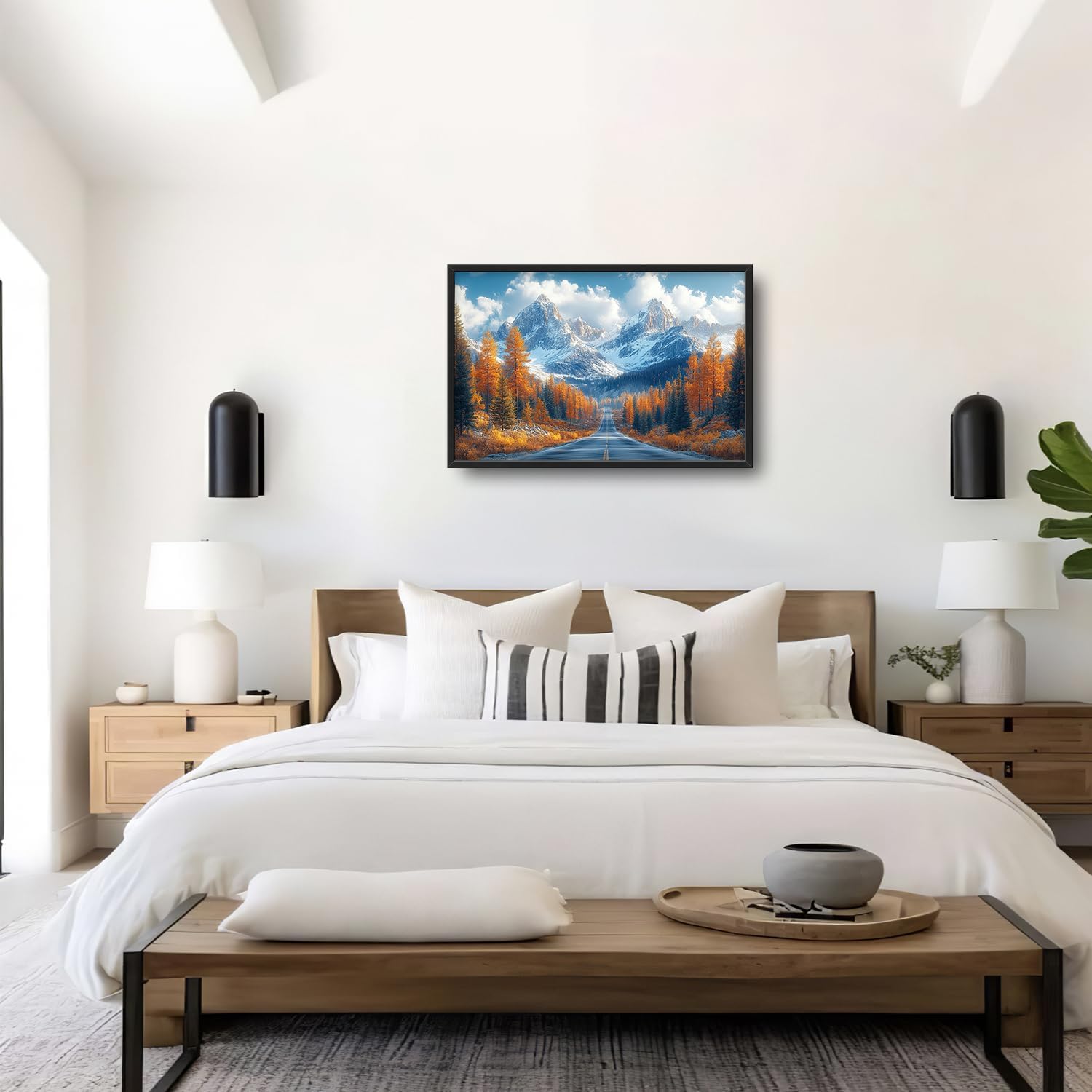 Large Forest Mountain Landscape Wall Art for Living Room, Nature Highway Road Scenery Canvas Oversized Wall Decor, Autumn Framed Pictures Painting Print Artwork for Bedroom Office 36"L x 24"W