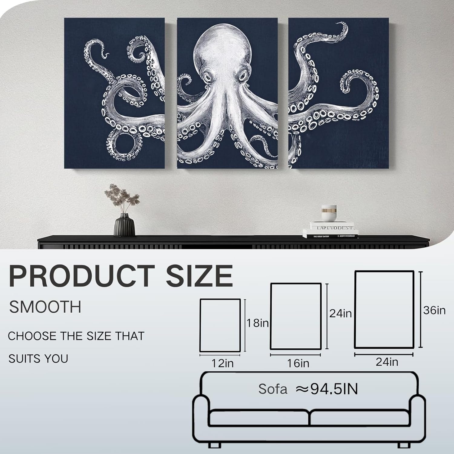 Octopus Wall Decor, Octopus Canvas Wall Art, Ocean Wall Decor,Sea Animal Canvas to Paint for Bathroom, Living Room, Bedroom (12" x 18" x 3 pcs)
