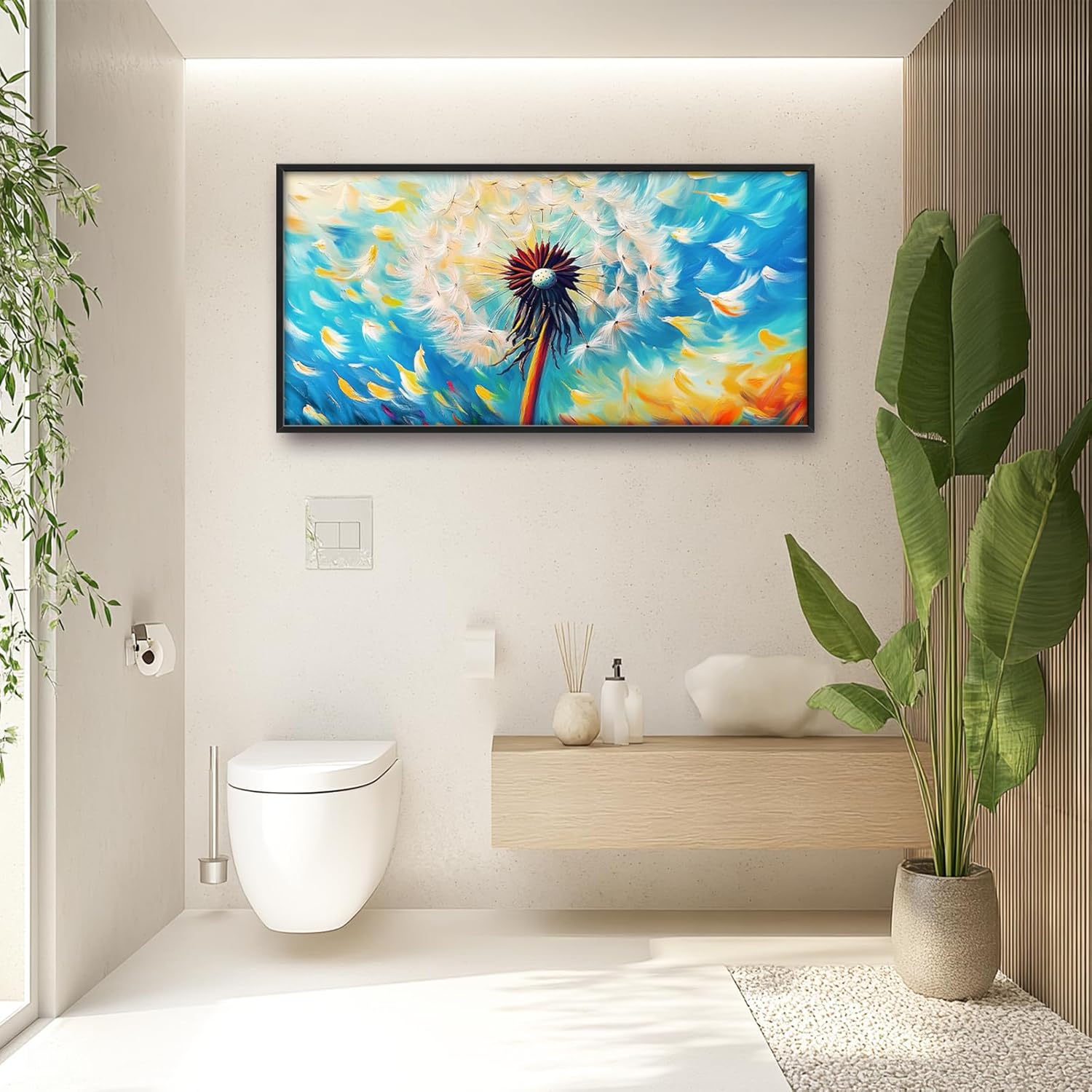 Extra Large Abstract Dandelion Framed Wall Art for Living Room,Oversized Colorful Dandelion Flower Pictures Wall Decor,Blue Canvas Print Painting Modern Artwork Bedroom Office Bathroom 60L" x 30W"