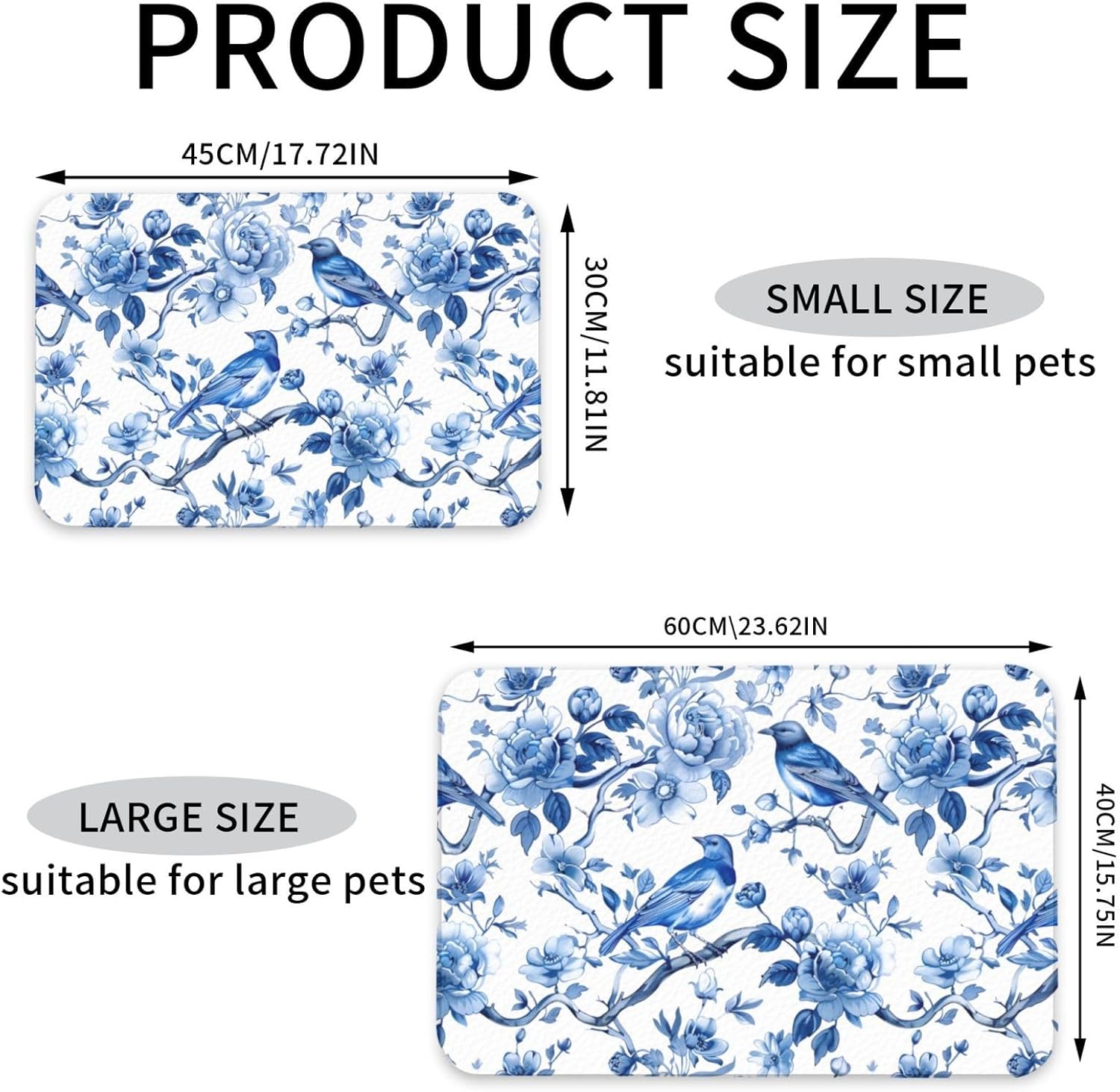 Chinoiserie Floral Birds Dog Food Mat Absorbent Bowl Mats No Stains Quick Dry Waterproof Pet Cat Placemats for Food and Water, 30x45cm