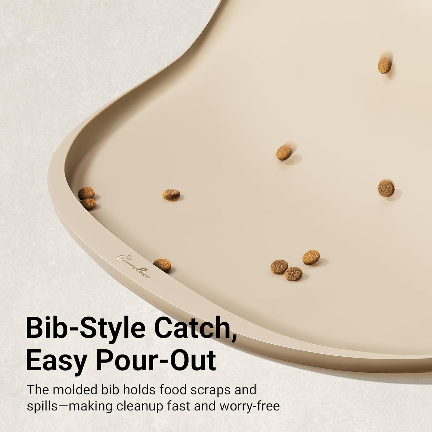 - Unique FurBib Design: Our thoughtful FurBib design helps guide water and crumbs back onto the pet feeding mat when lifted. Less scatter, less cleanup. The small pocket (10mm deep) suits most cat food sizes, while the medium pocket (16mm deep) easily contains common dog kibble