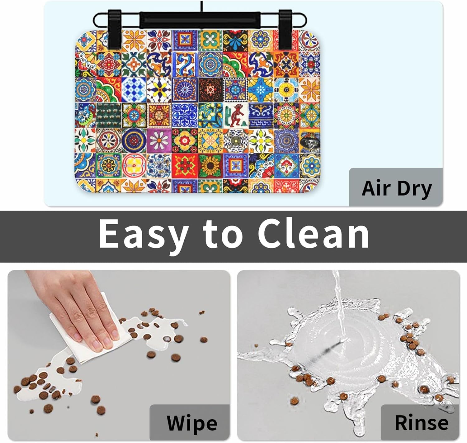 - Fun & Fashionable Print - These Dog Dish Mats Come In A Variety Of Different Printing Designs And Different Sizes, Which Allow You To Choose To Matches Your Home Decoration And Added A Touch Of Personality And Uniqueness To Your Pet'S Feeding Area