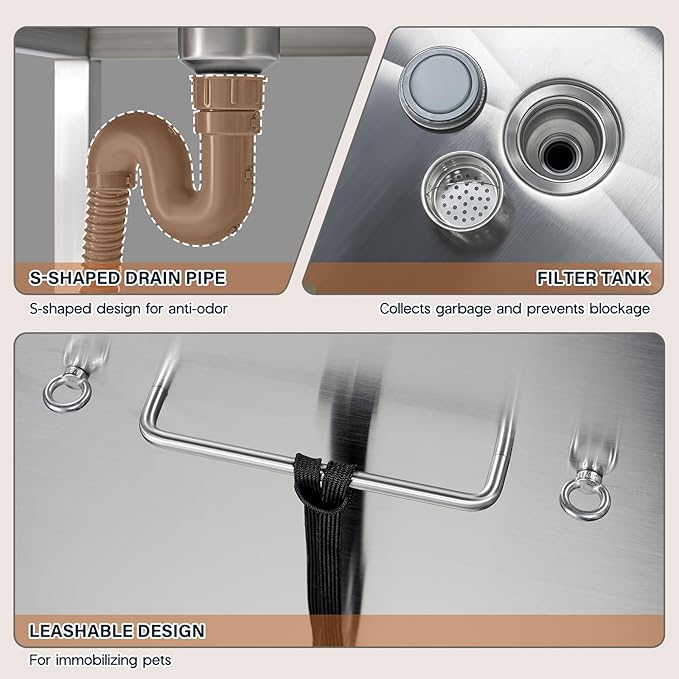 - Durable & Easy to Maintain: Crafted from high-quality 304 stainless steel, this dog wash tub is built for long-term durability and wear resistance. Its smooth surface design makes cleaning up after each use quick and easy.
