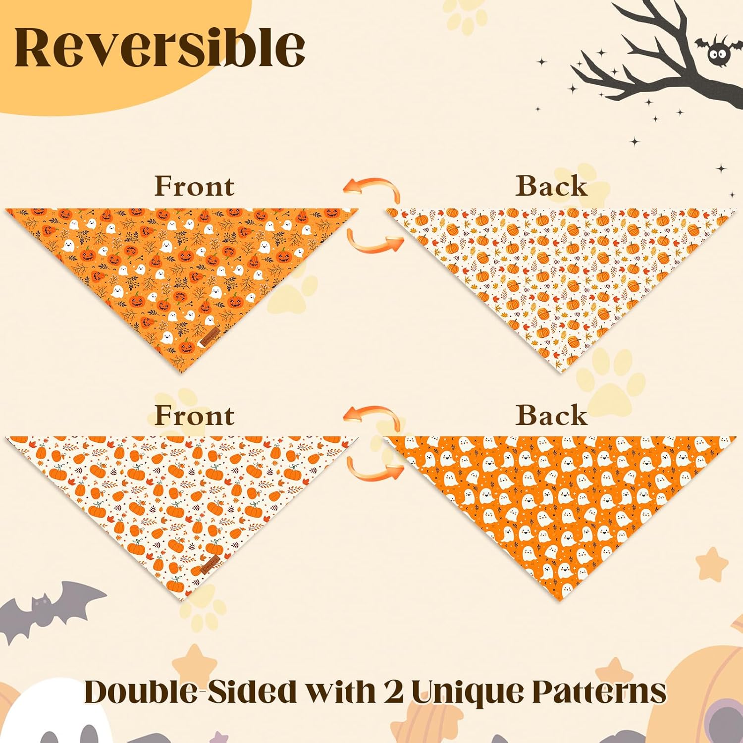2 Pack Halloween Dog Bandanas,Leather Brand Logo, Double-Layed Soft Skin-Friendly Fabric, Autumn Scarf Accessory for Boys & Girls,Suitable for Halloween, Daily Walks & Family Outings