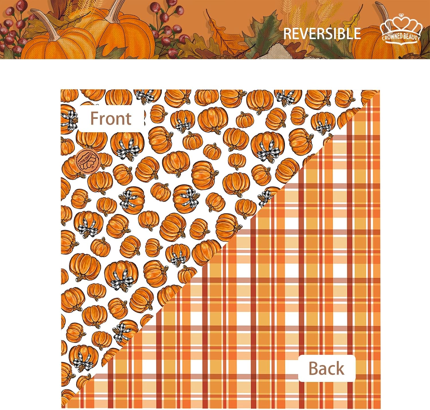 CROWNED BEAUTY Fall Dog Bandanas Reversible Large 2 Pack, Fall Pumpkin Set, Orange Adjustable Triangle Holiday Scarves for Medium Large Extra Large Dogs Boy Girl Pets DB187-L