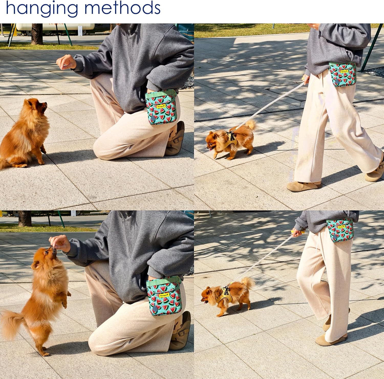 Dog Treat Pouch for Pet Walking and Training with Clicker 2 Cup Silicone Bag Small Fanny Pack Holder for Puppy Snack Dispenser Kit for Leash and Outdoor Use (Watermelon)