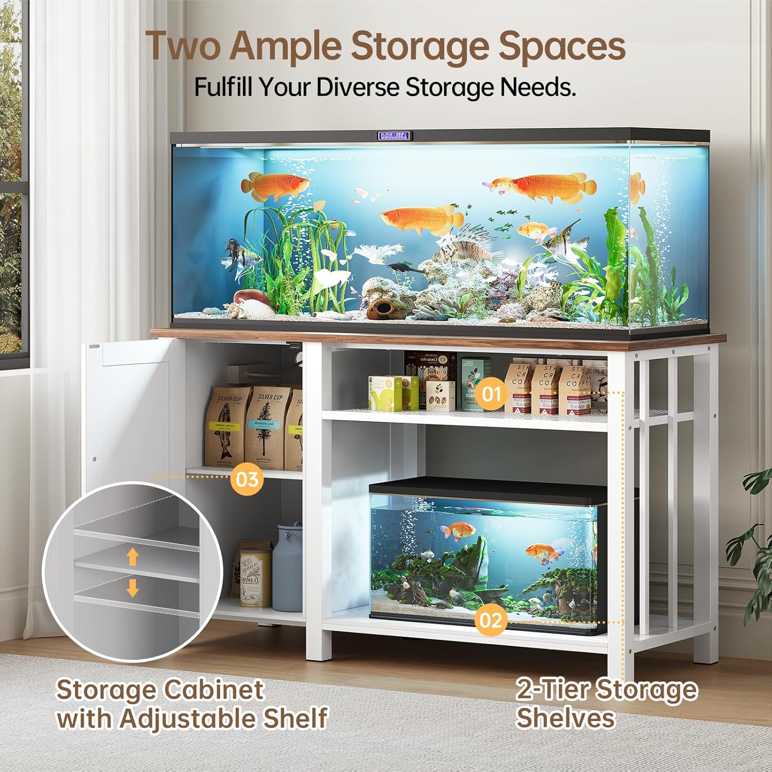 55-75 Gallon Fish Tank Stand with Power Outlet & Adjustable Shelf, Heavy Duty Aquarium Stand with Cabinet Storage for Fish Tank, Turtle Tank, Reptile Terrarium, 1000LBS Capacity, White