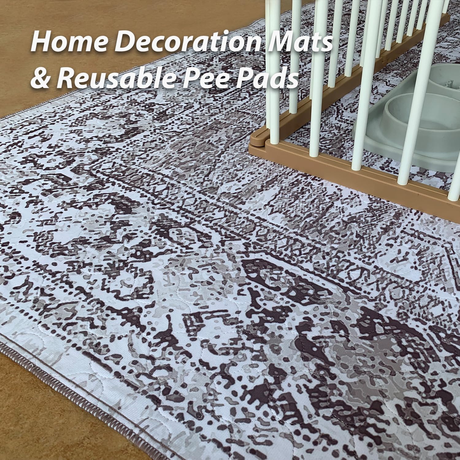 nunubaby Washable Pee Pads for Dogs, Stylish, Non-Slip and Leak-Proof Pee Pads. Reusable Potty Pads for Dogs for Crates and Floors.(Brown/Geo, 36" x36")