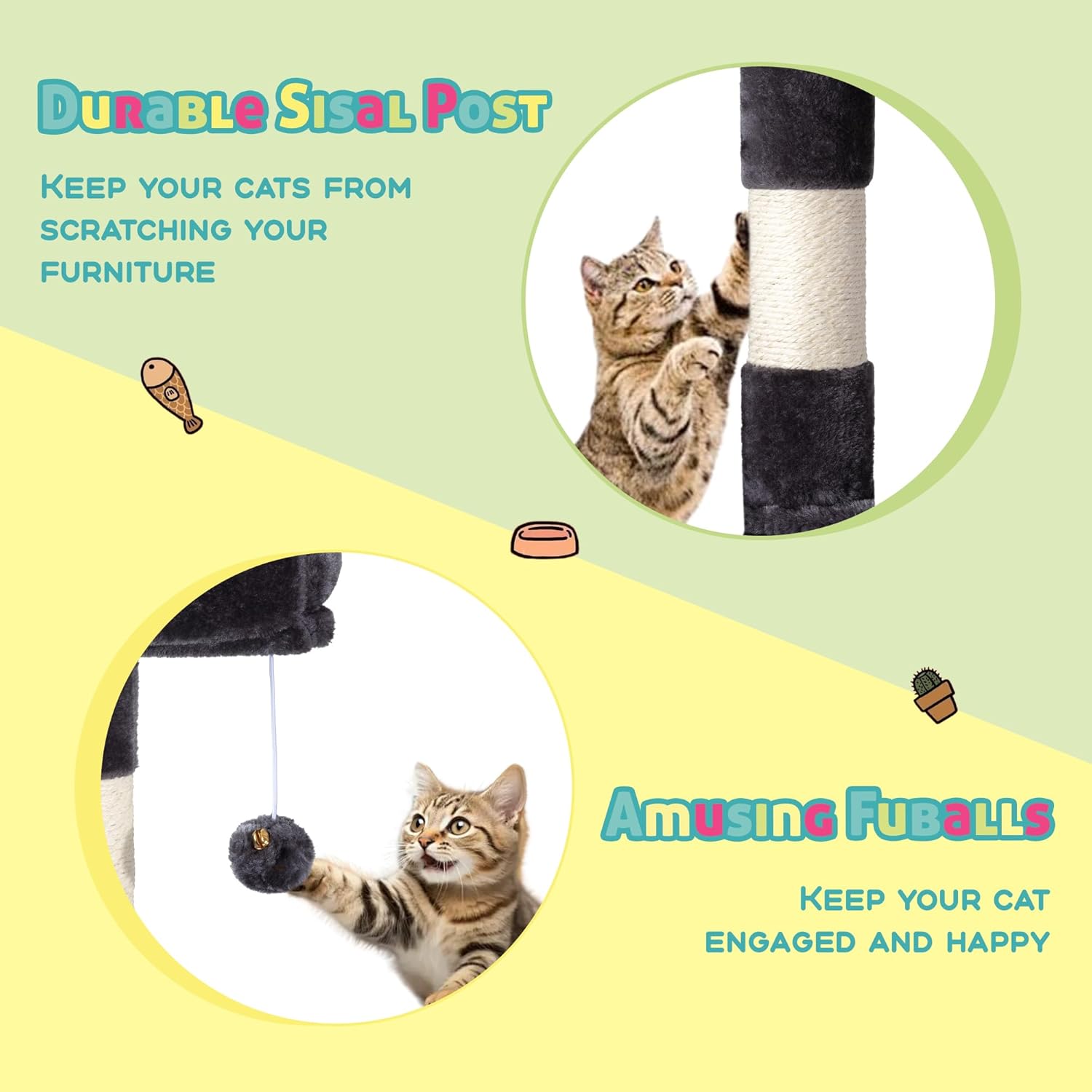 - Premium Build: Designed with durable, CARB P2-compliant particle board and cozy plush fabric, and reinforced with sisal-wrapped posts to let your feline friends scratch away without sacrificing your furniture
