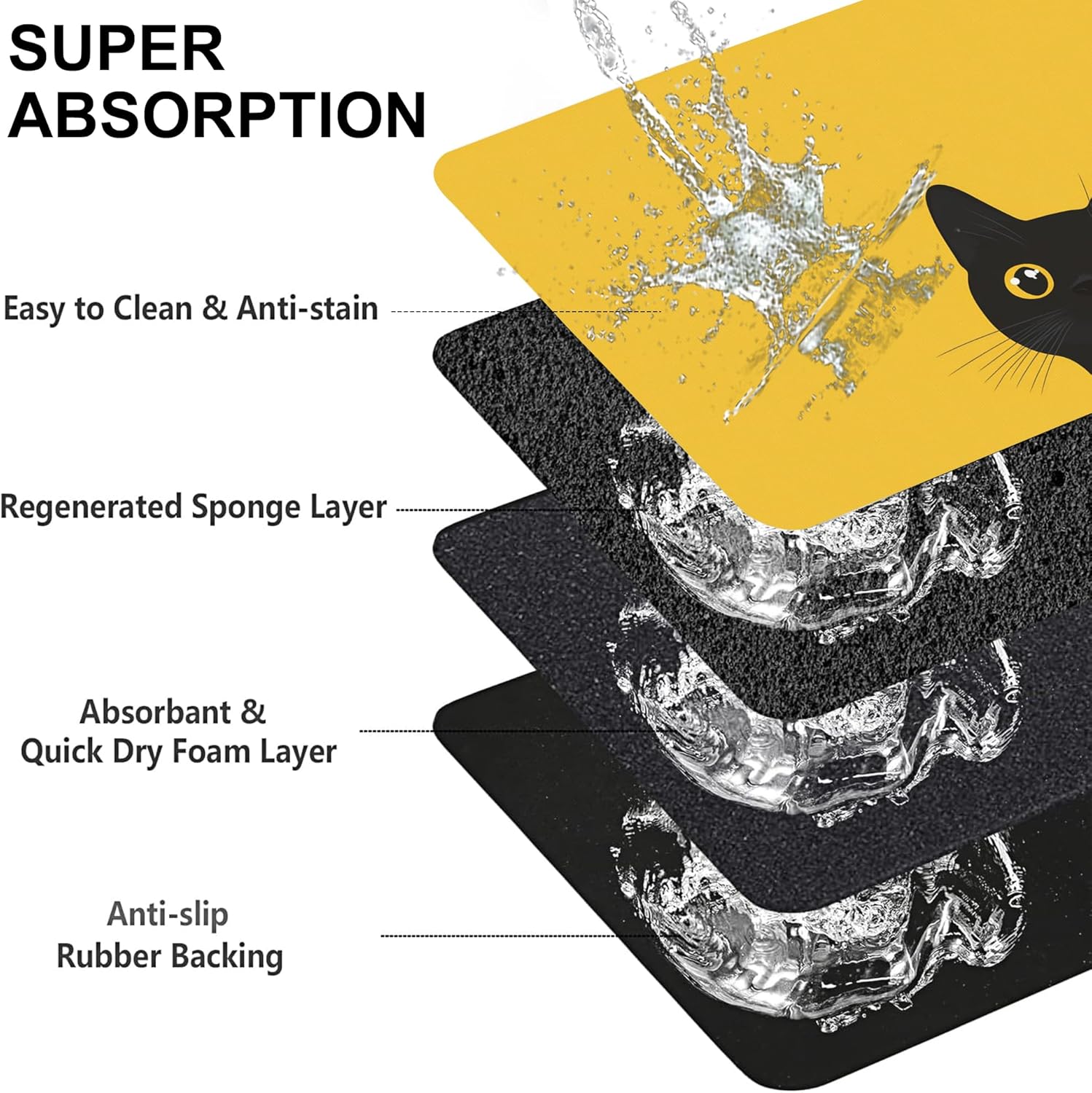 Cute Black Cat Peeking Dog Cat Food Mat-Absorbent Placemat for Food and Water Bowl, Waterproof Non Slip Rubber Backing Dog Food Mats for Floors, Pet Supplies 16 * 24 inch