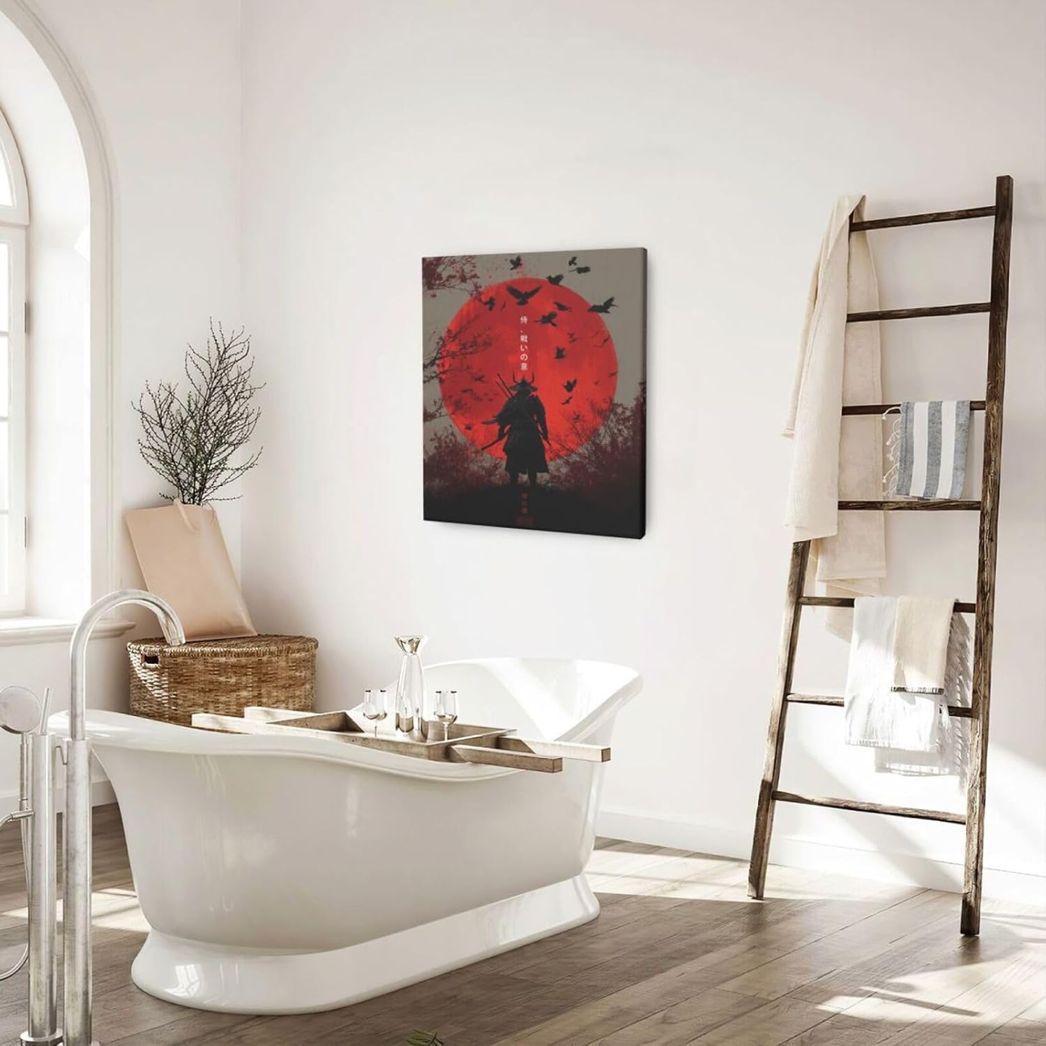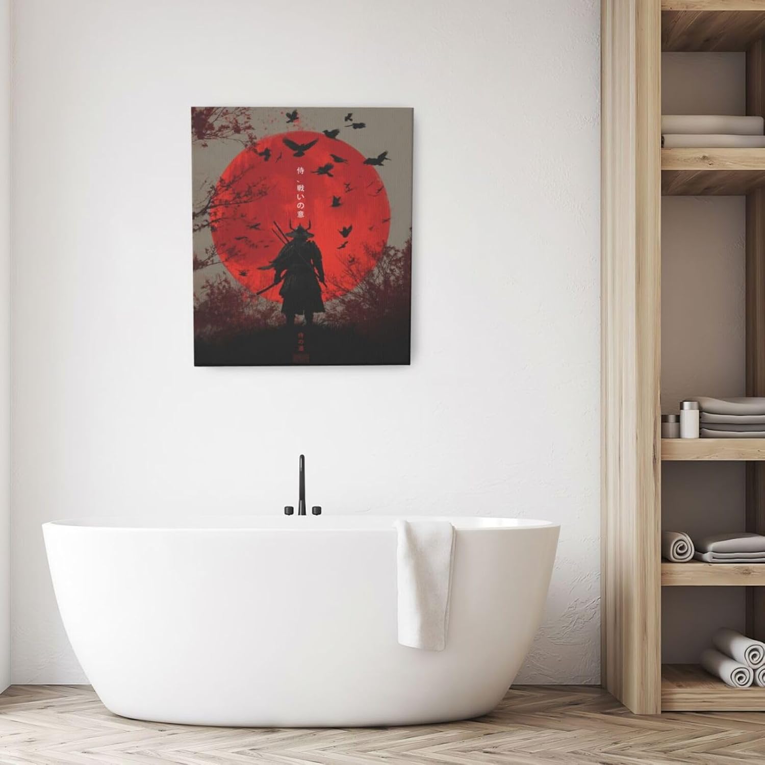 Japanese Armored Samurai Wall Art Modern Japan Warrior Canvas Wall Decor Asian Oriental Bushido Pictures Painting Print Artwork Framed Decorations Gifts for Room Bedroom Office Living Room 20"x24"