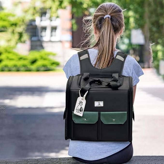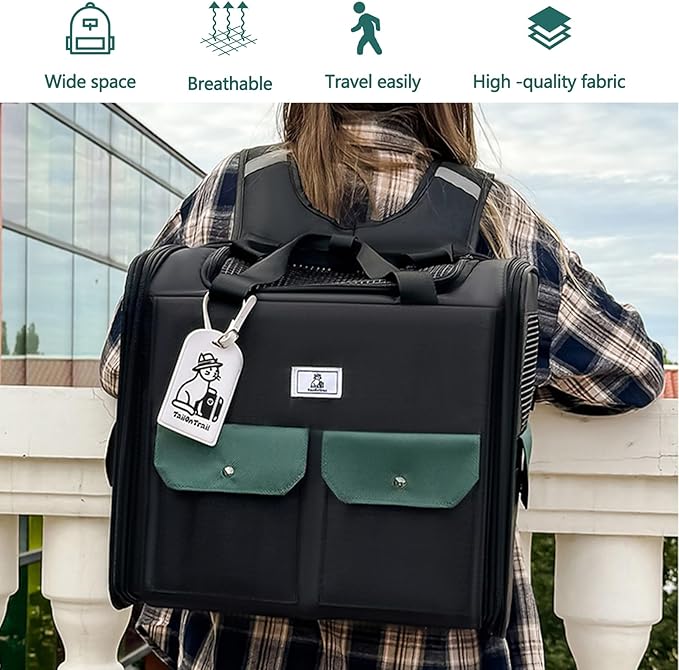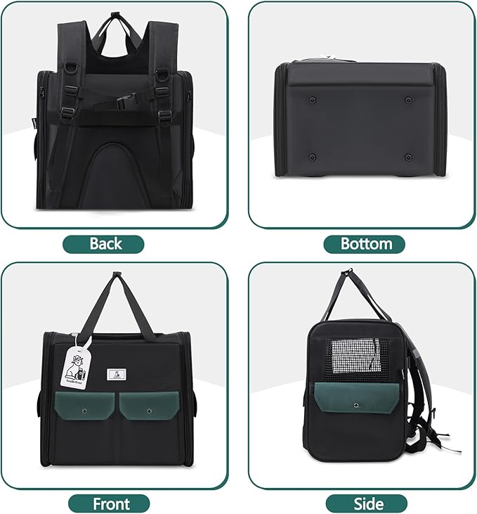 - Multiple ways to carry: This pet backpack can be carried by hand to ensure balance when carrying. It can also be carried on the shoulders. The sides and top can be opened for the owner to feed and pet. The front storage pocket can easily store snacks, toys, leashes, etc. Folding design for easy storage.