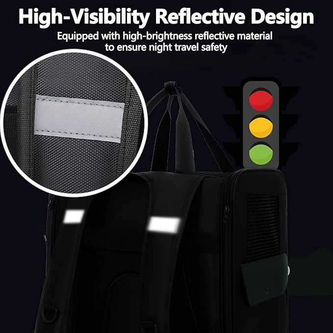 Dog Backpack, Pet Backpack with Breathable Mesh, Pet Travel Carrier with Soft Padded, Reinforced Support, Airline Approved Cat Backpack(Black)