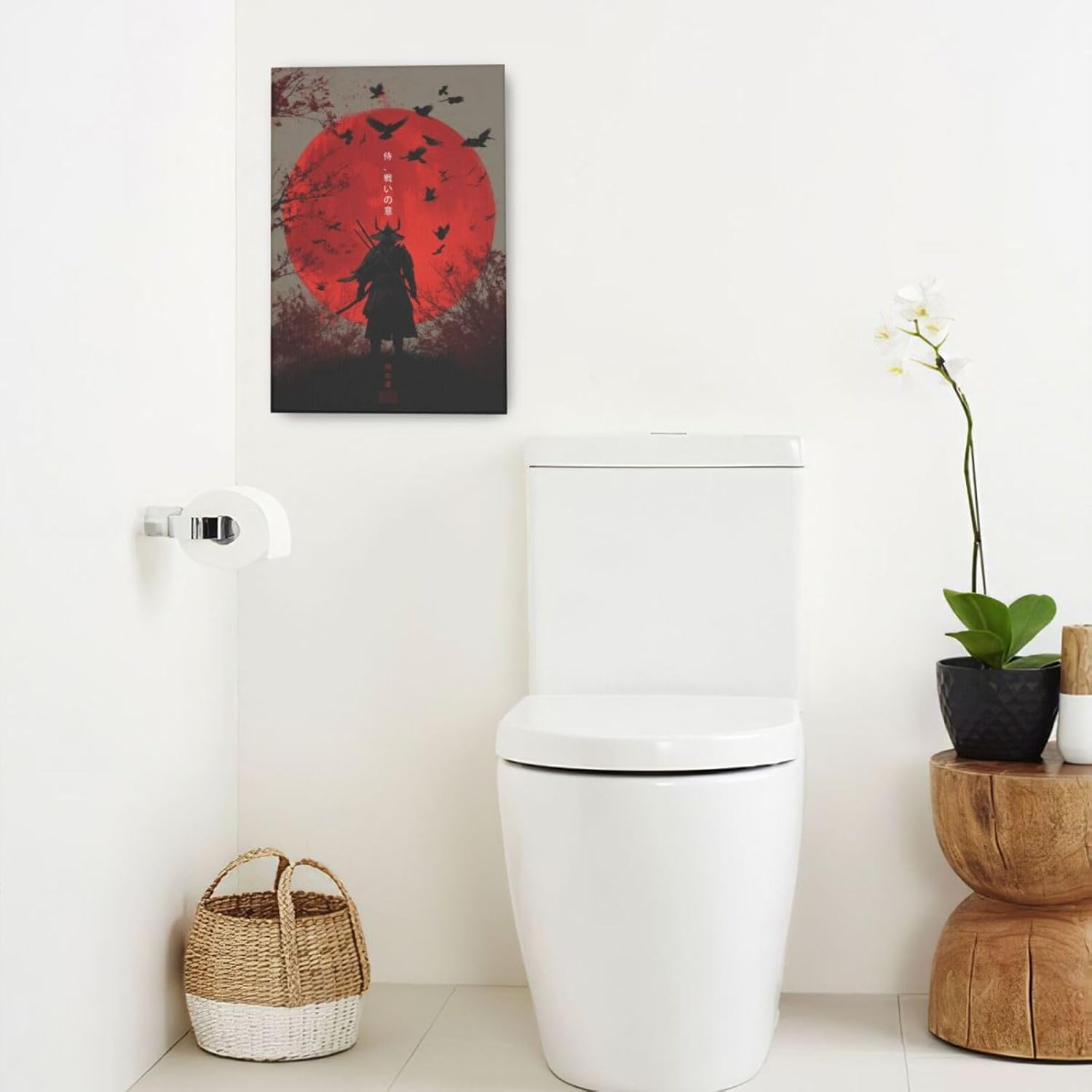 Japanese Armored Samurai Wall Art Modern Japan Warrior Canvas Wall Decor Asian Oriental Bushido Pictures Painting Print Artwork Framed Decorations Gifts for Room Bedroom Office Living Room 16"x24"