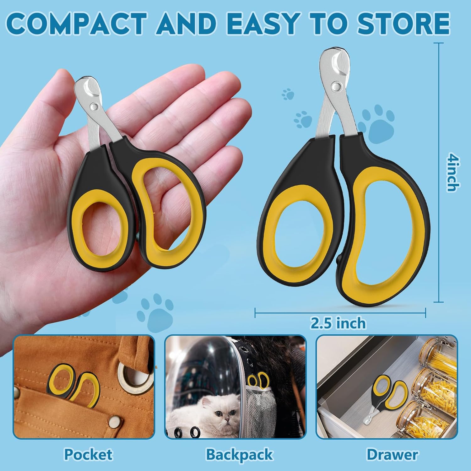 - ALL-IN-ONE GROOMING ESSENTIAL: Whether you're a new pet owner or an experienced pet parent, this cat nail clipper makes at-home grooming easy and efficient. From kitten nail clipping to trimming small dog claws or bird talons, this tool handles it all. It’s a must-have for anyone in search of versatile pet nail clippers or a safe and simple cat claw clipper to keep your pet’s nails tidy and healthy.