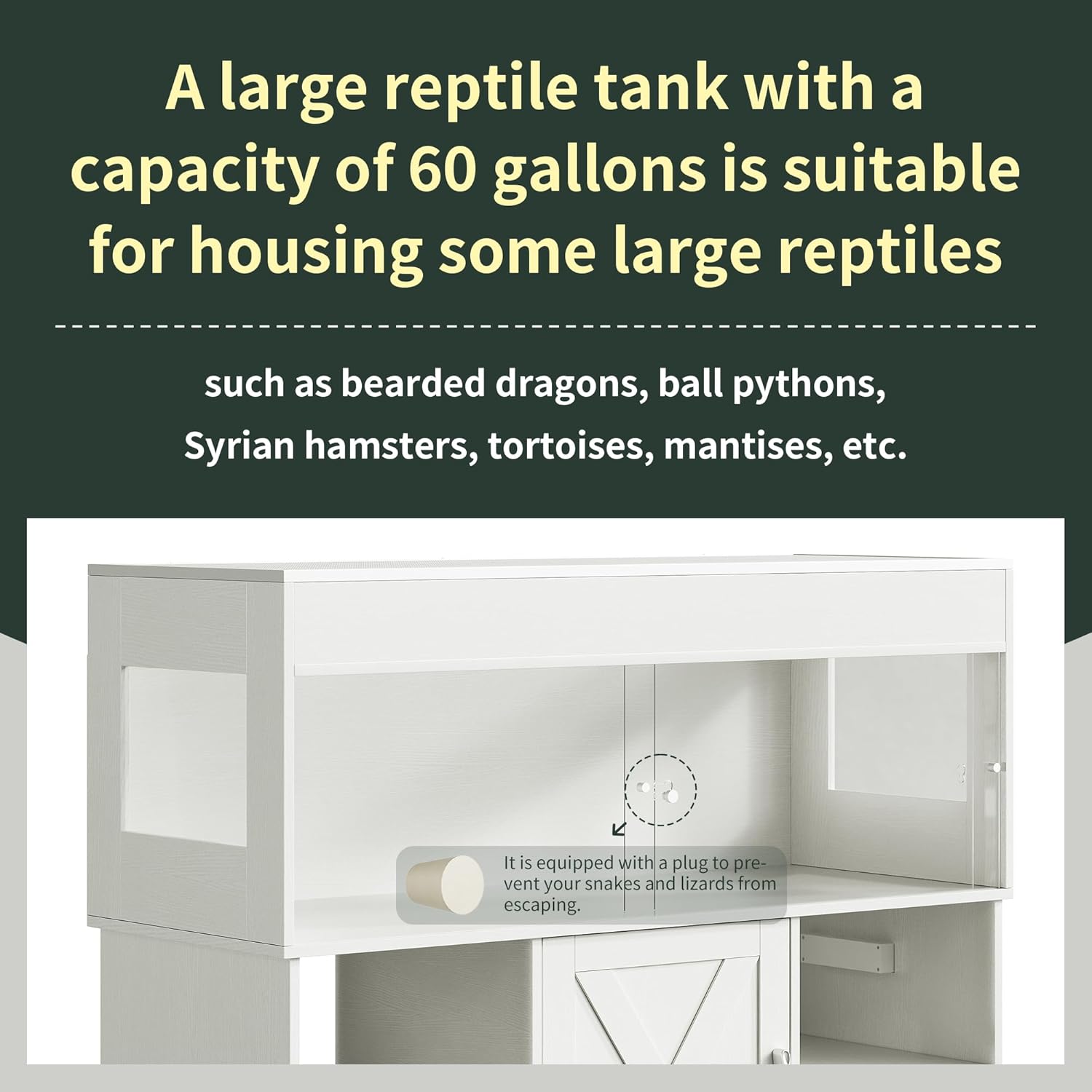60 Gallon Reptile Tank with Stand, Terrarium Tank with Storage Cabinet, for Lizards, Skinks, Snakes, Sliding Acrylic Doors, Mesh Top, Built-in Power Outlet White PX02RTW