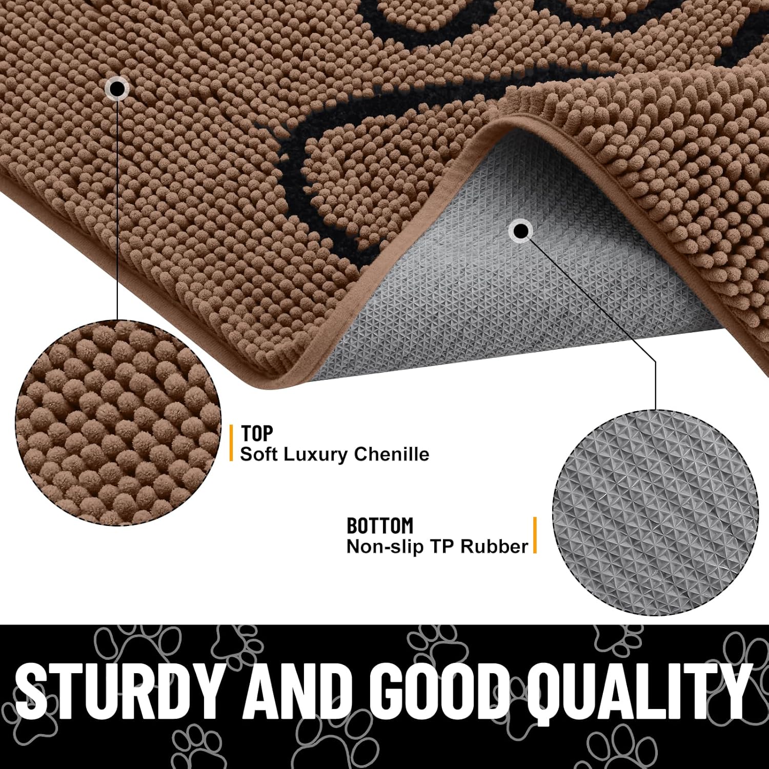 Smiry Dog Door Mat for Muddy Paws, Absorbent Dirt Trapper Non Slip Quick Dry Washable Chenille Mat for Mud Dogs, Entry Rug for Indoor and Outdoor (30x20 Inches, Coffee)