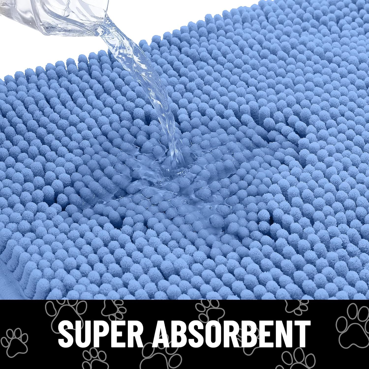 Smiry Dog Door Mat for Muddy Paws, Absorbent Dirt Trapper Non Slip Quick Dry Washable Chenille Mat for Mud Dogs, Entry Rug for Indoor and Outdoor (36x24 Inches, Cornflower Blue)