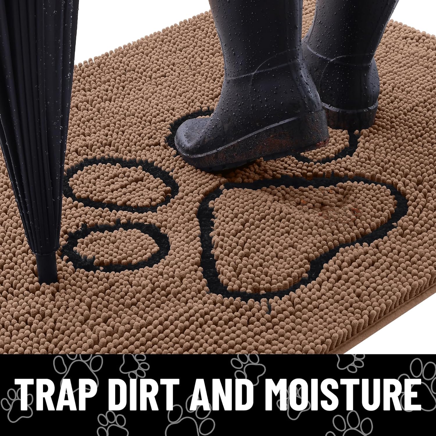 Smiry Dog Door Mat for Muddy Paws, Absorbent Dirt Trapper Non Slip Quick Dry Washable Chenille Mat for Mud Dogs, Entry Rug for Indoor and Outdoor (48x30 Inches, Coffee)