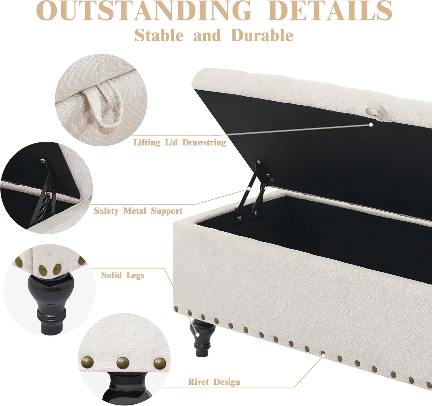 Mangodan51” Linen End of Bed Storage Bench, Tufetd Upholstered Storage Ottoman Bench with Safety Hinge, 330 lb Large Ottoman with Storages for Living Room, Entryway & Bedroom, Window Benches, Beige