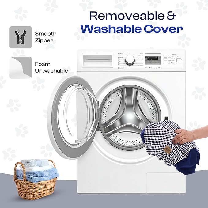 - Fully Washable Cover – Soft upholstery zip cover slips off for machine wash; breathable velvet tread grips paws even when wet.