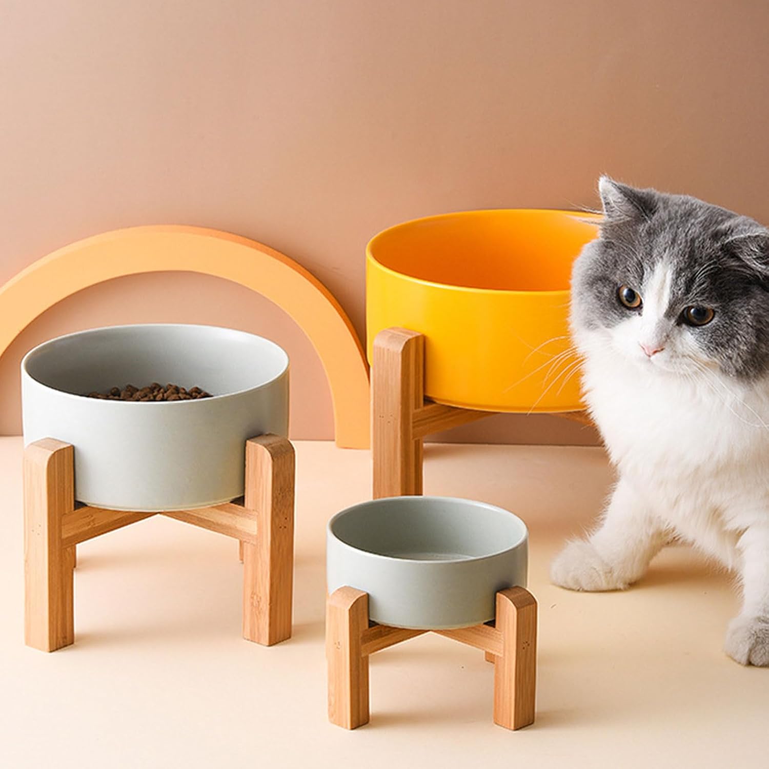 - MODERN DESIGN: Modern and cute Petygooing pet bowl with a bamboo wood stand with a non-slip base, suitable for every home style, especially boho home decor