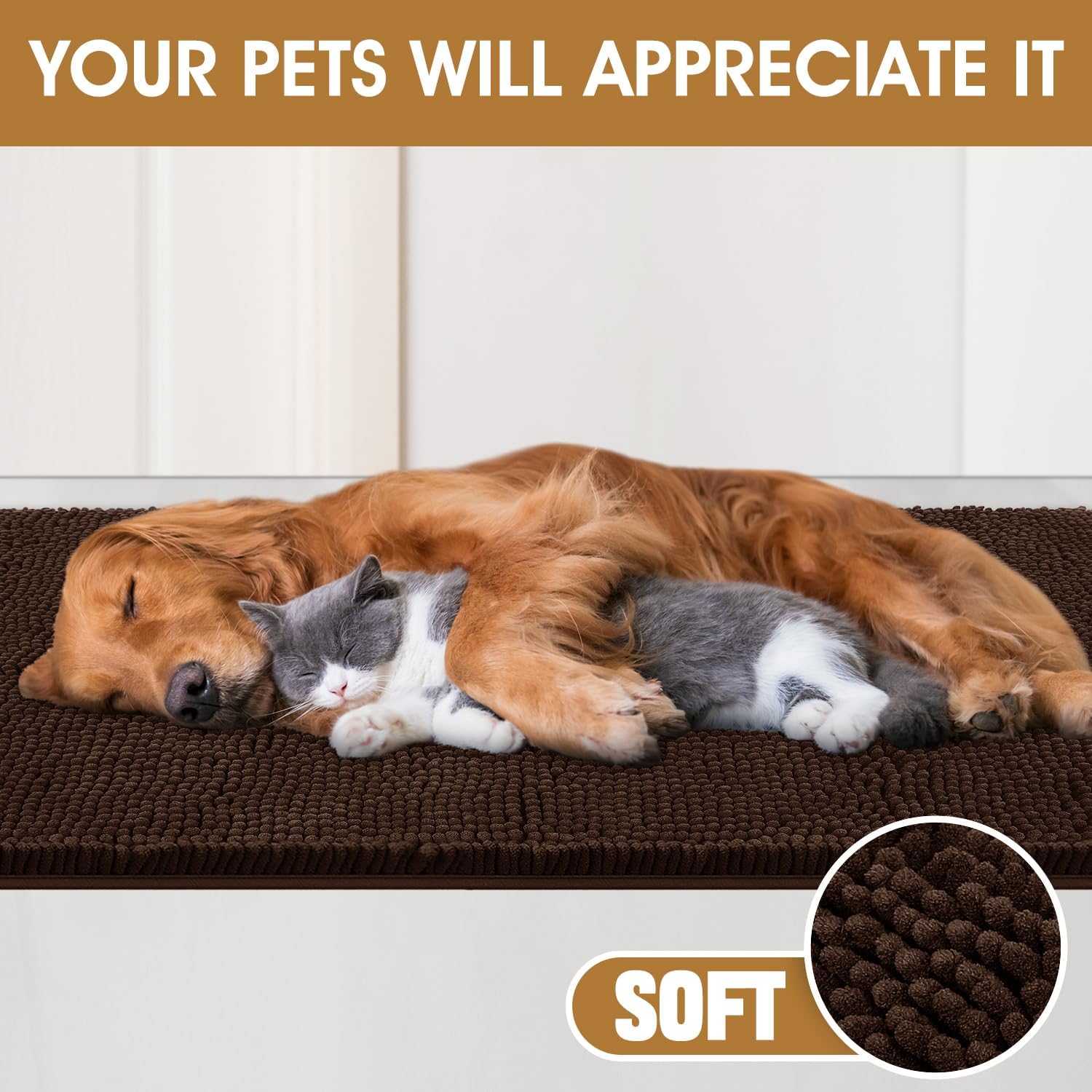 Extra Large Dog Door Mats for Muddy Paws, Chenille Absorbent Dog Mats, Non Slip Heavy Mud Mat for Dogs, Soft Pet Mat for Entryway, Mud Paws, Inside Floor,71" x 25", Brown