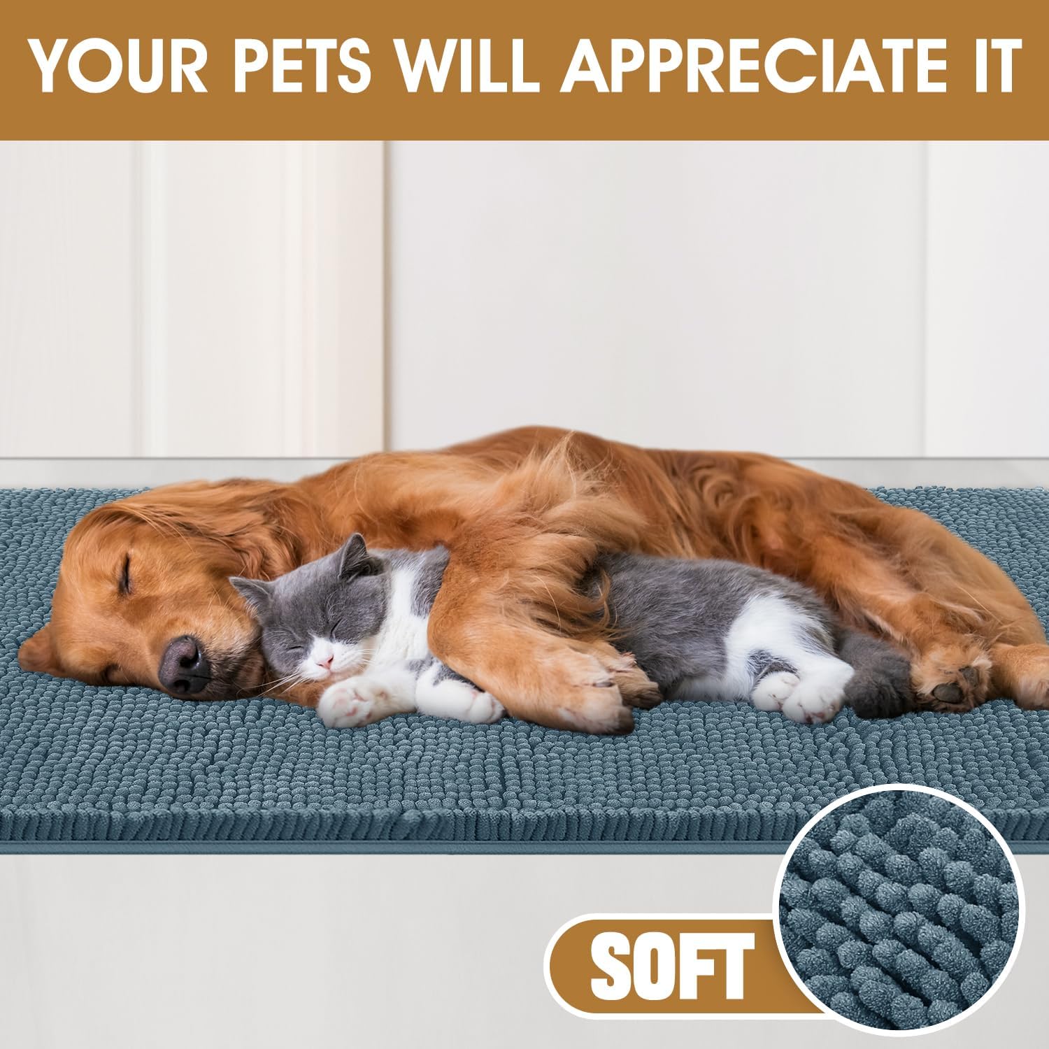 IM HOME Dog Door Mats for Muddy Paws, Chenille Absorbent Door Mats, Non Slip Heavy Mud Mat for Dogs, Soft Indoor Door Mat for Entryway, Mud Paws, Inside Floor,36" X 24", Dusty Blue