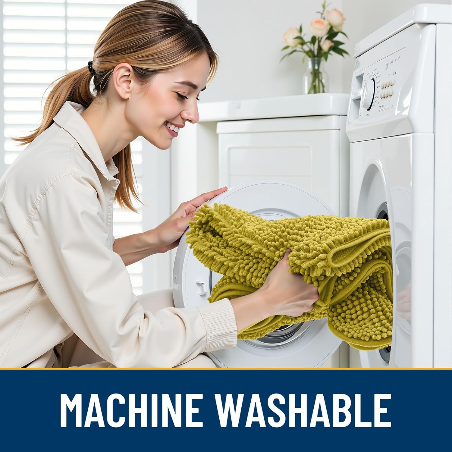Smiry Dog Door Mat for Muddy Paws 36x24, Absorbs Moisture and Dirt Doormat, Non-Slip Washable Quick Dry Chenille Front Door Mat Indoor Entrance, Entryway Carpet for Inside Floor, Mustard Yellow