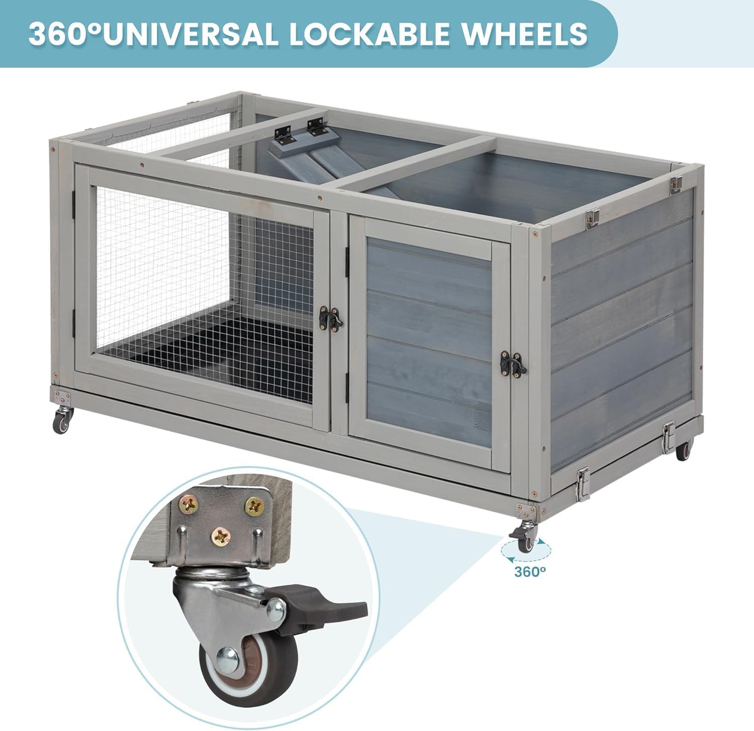 - 【Safe and Easy to Clean】: Featuring a removable PVC tray and 2 doors, this rabbit house allows you to interact with furry friends closely and clean thoroughly. The upper compartment is convenient for you to place fur babies while cleaning.