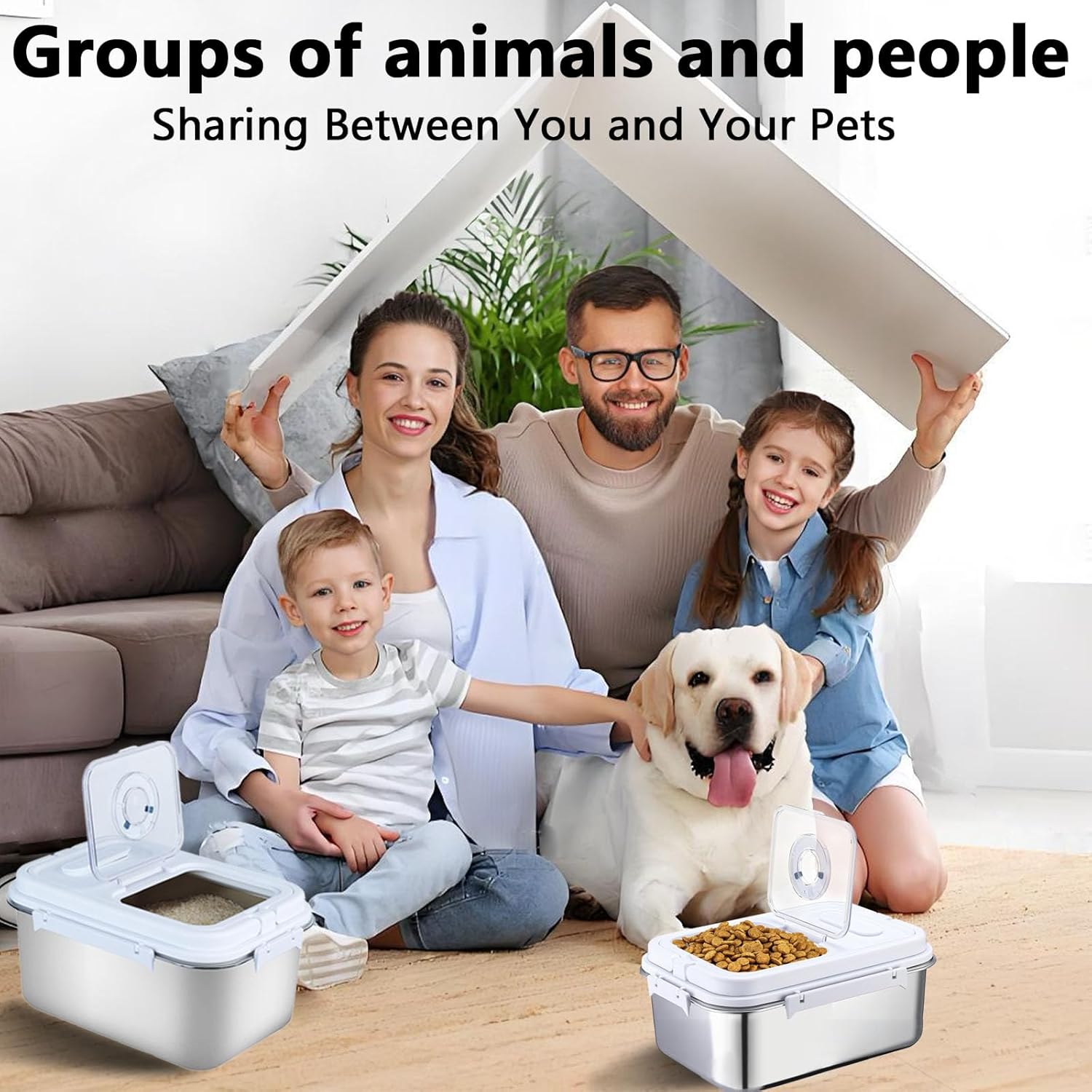 - 304 Stainless Steel Materials: Our dog food storage containers are made of 304 stainless steel, which is more durable and drop-resistant than ordinary plastic food storage buckets. Come with a stainless steel scoop is more durable than the plastic scoop, not easy to damage, and can be used for a long time.Can maximize the freshness of dry food and snacks, the stainless steel surface is not easy to adhere to food debris, providing you with a clean and orderly food storage area