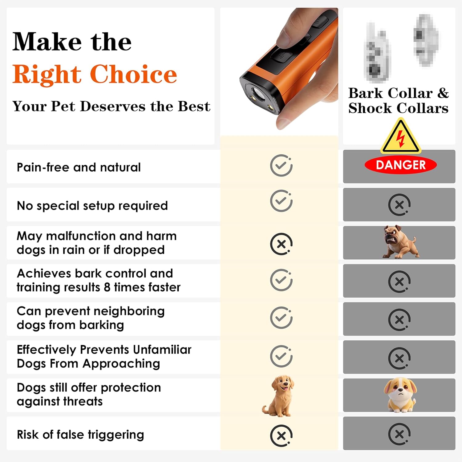 Dog Bark Deterrent Devices Rechargeable Anti-Barking Device for Dogs 50ft Long Range Ultrasonic Correct Your Dog's Bad Behavior at the Push of aButton Better Than Shock Collars or Dog Training Collars