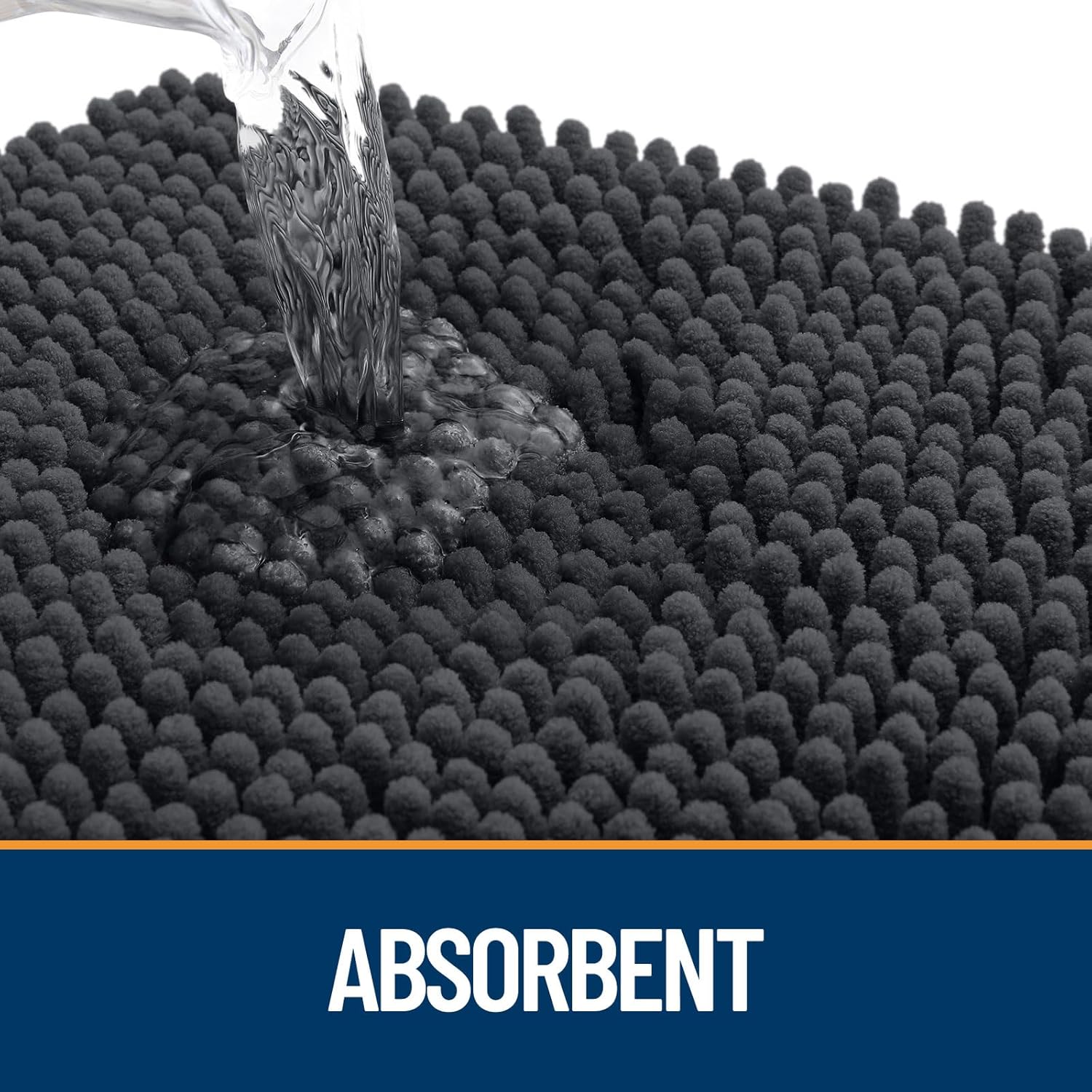 OLANLY Door Mat for Muddy Dog Paws 30x20, Absorbent Chenille Doormat with Paw Print Design, Non-Slip Washable Doormat for Indoor Entryway, Quick-Dry Pet Bed Mats for Dirty Dogs, Dark Grey and Black
