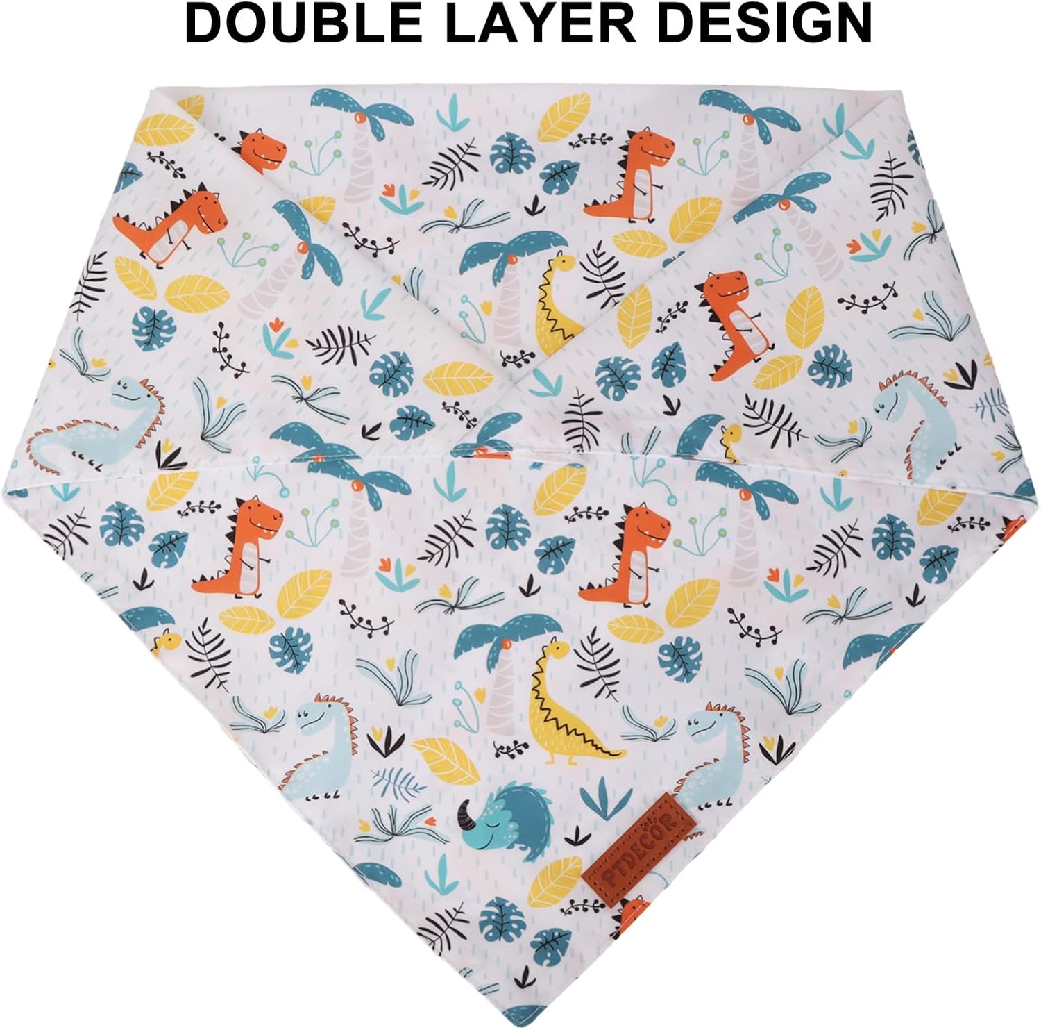 PTDECOR Dinosaurs Dog Bandana, Dinosaurs Design Reversible Pet Scarf Bib, Premium Durable Fabric, Adjustable White Green Bandanas for Medium Large Dogs Pets (Large)