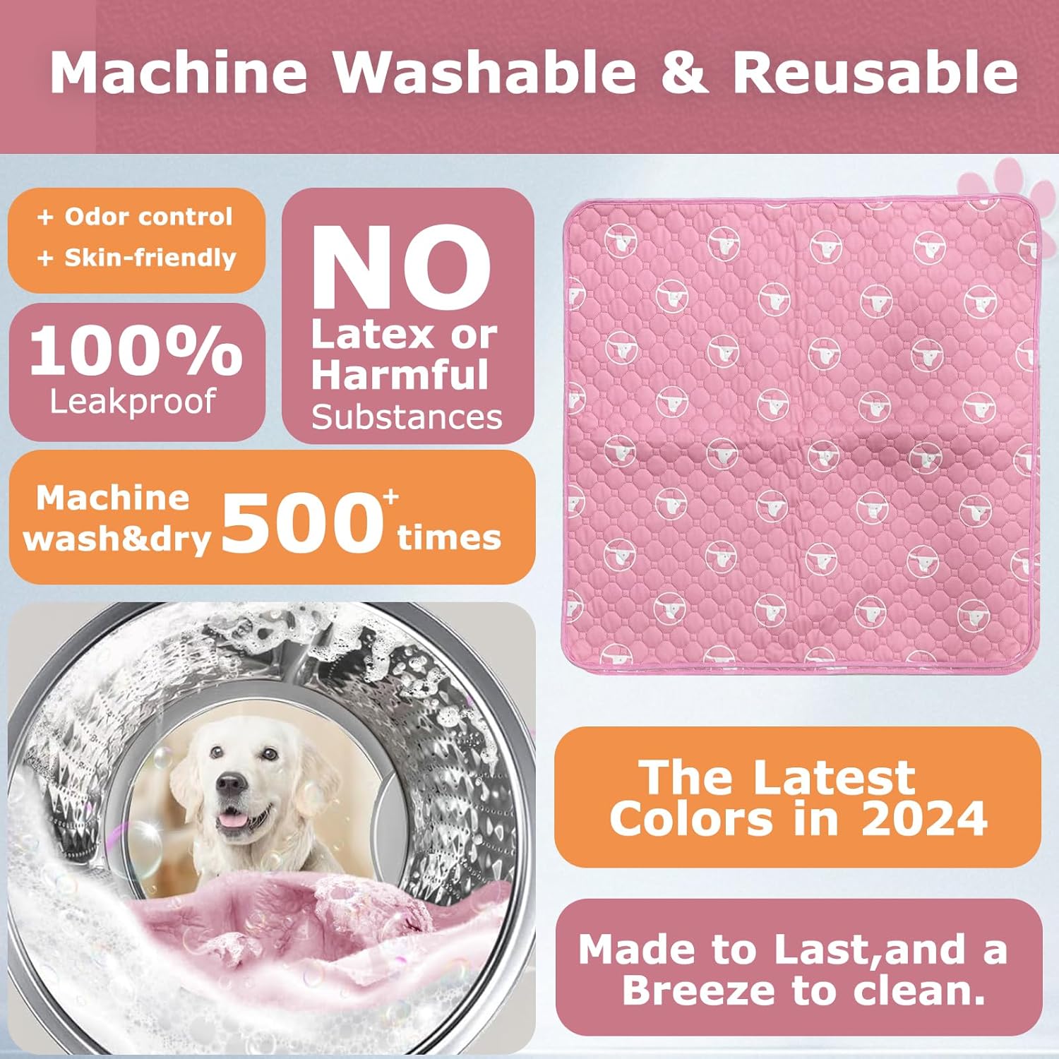 PJYuCien Washable Dog Playpen Mat, 36”x 36” Pink, Leak-Proof Reusable Puppy Pee Pads, Non-Slip Pee Mat for Whelping Pads, Crate, Potty Training, Puppy Playpen (Note: Mat Only, Playpen Not Included)