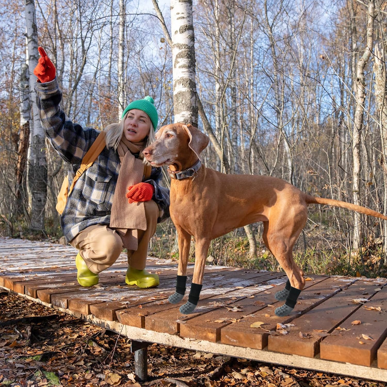 - DUAL SIDED ANTI-SLIP: Each side of the dog socks with grippers has lots of pawprint shape rubber, providing great extra traction when your dog walks on smooth surfaces. They work even if the socks are twisted. They're perfect for active dogs. And if your elderly dog has problems with slippery hind legs, they can help your old friend get around the house again