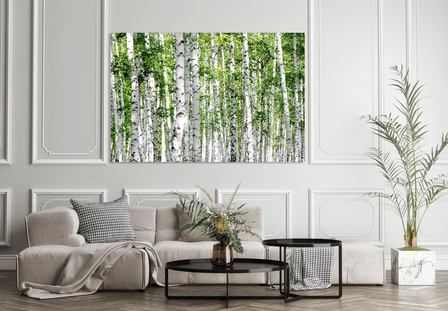 Nature Wall Art Prints - Ocean Forest Mountain Lake Canvas Landscapes - Small to Extra Large Living Room Bedroom Kitchen Bathroom Décor (Green Brich Trees, 35L" x 53W")