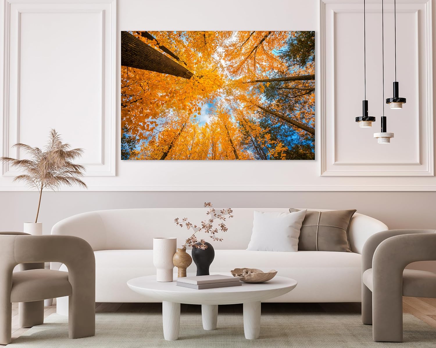 Nature Wall Art Prints - Ocean Forest Mountain Lake Canvas Landscapes - Small to Extra Large Living Room Bedroom Kitchen Bathroom Décor (Blue Sky Through Yellow Autumn Trees, 24L" x 36W")
